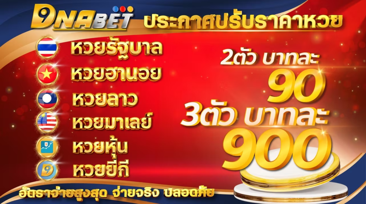 มีความมั่นคง จ่ายหนัก จ่ายจริง หวย อัตราการจ่ายเงินดีที่สุด ราคาหวย สูงสุดบาทละ 90